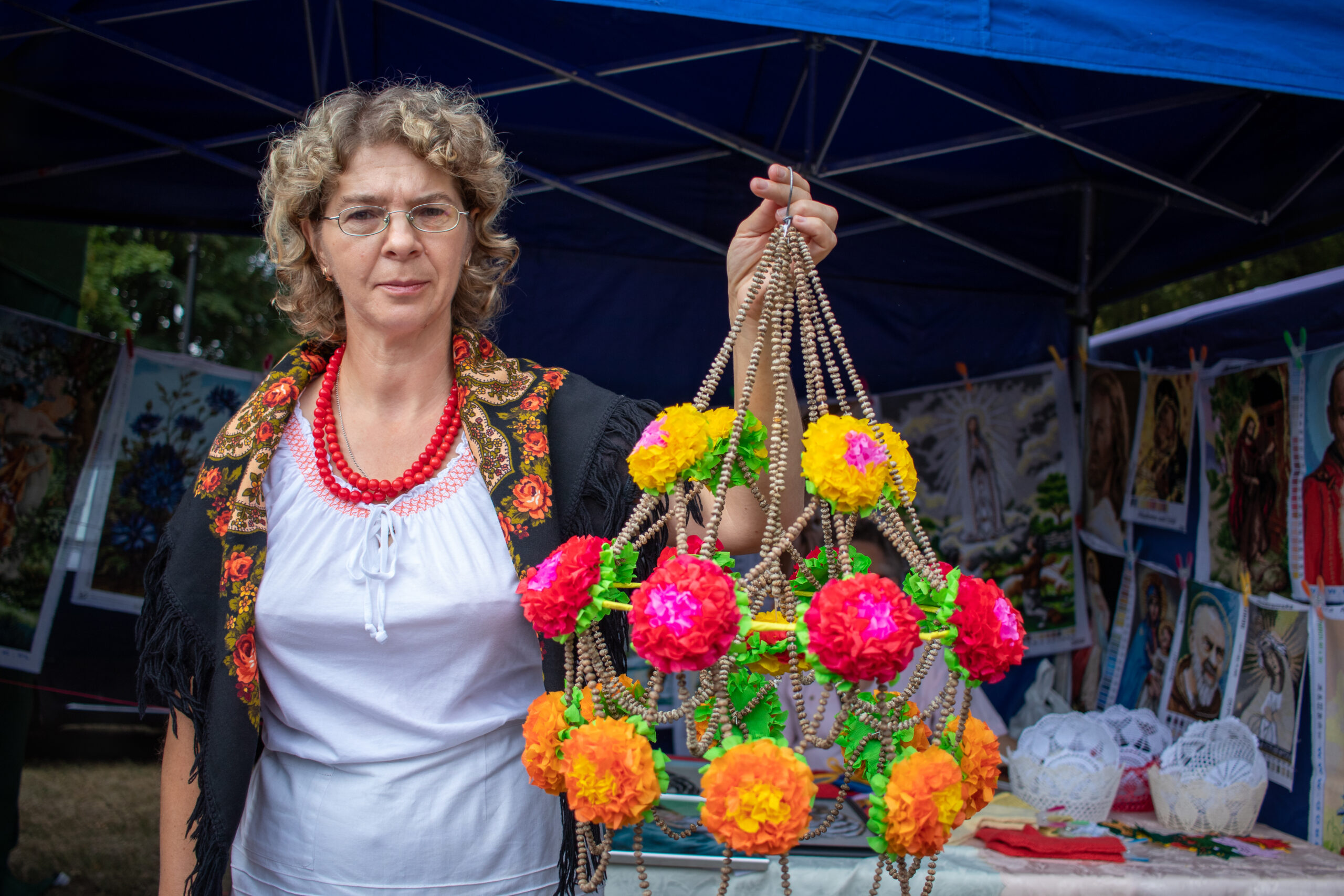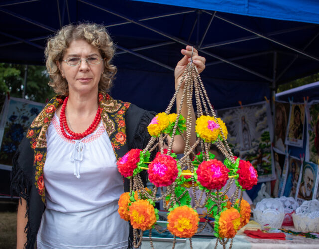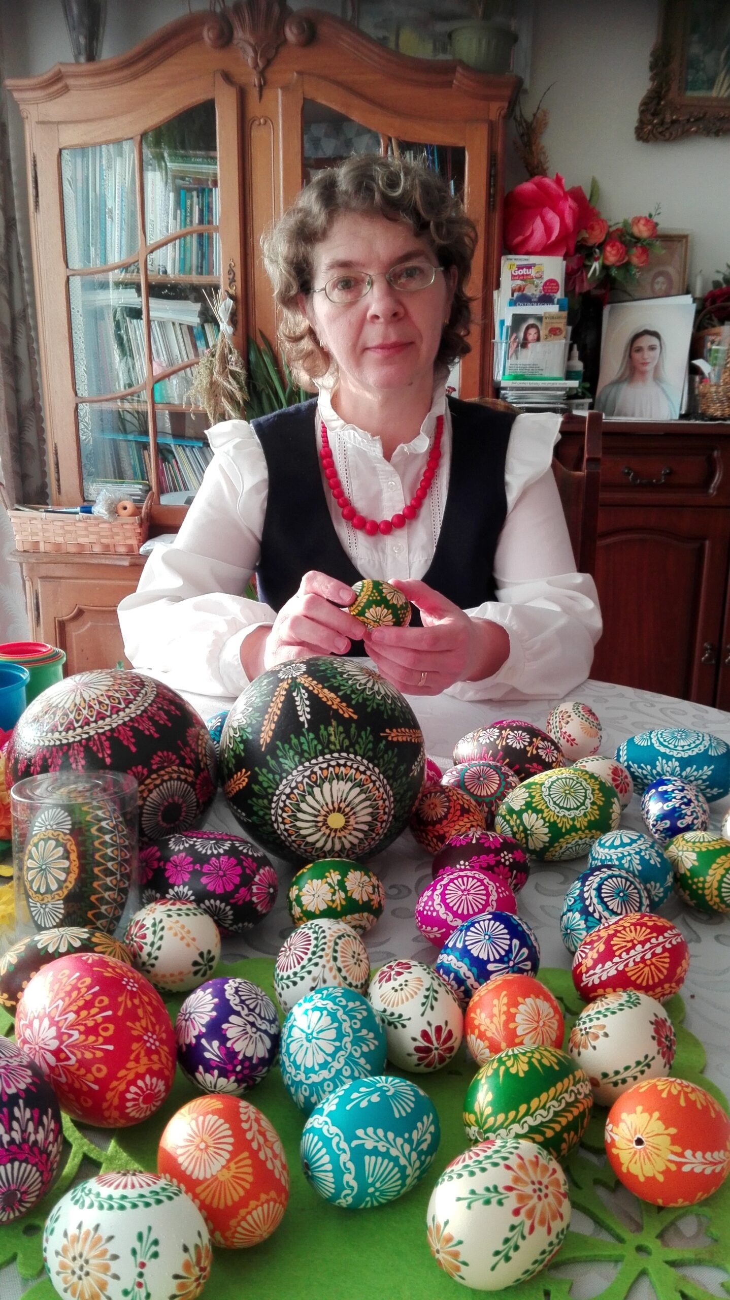 Pani Bożena to ceniona twórczyni ludowa, która od 25 lat z zaangażowaniem rozwija swoją pasję do rękodzieła, łącząc umiejętności w dziedzinie pisankarstwa i tworzenia pająków.