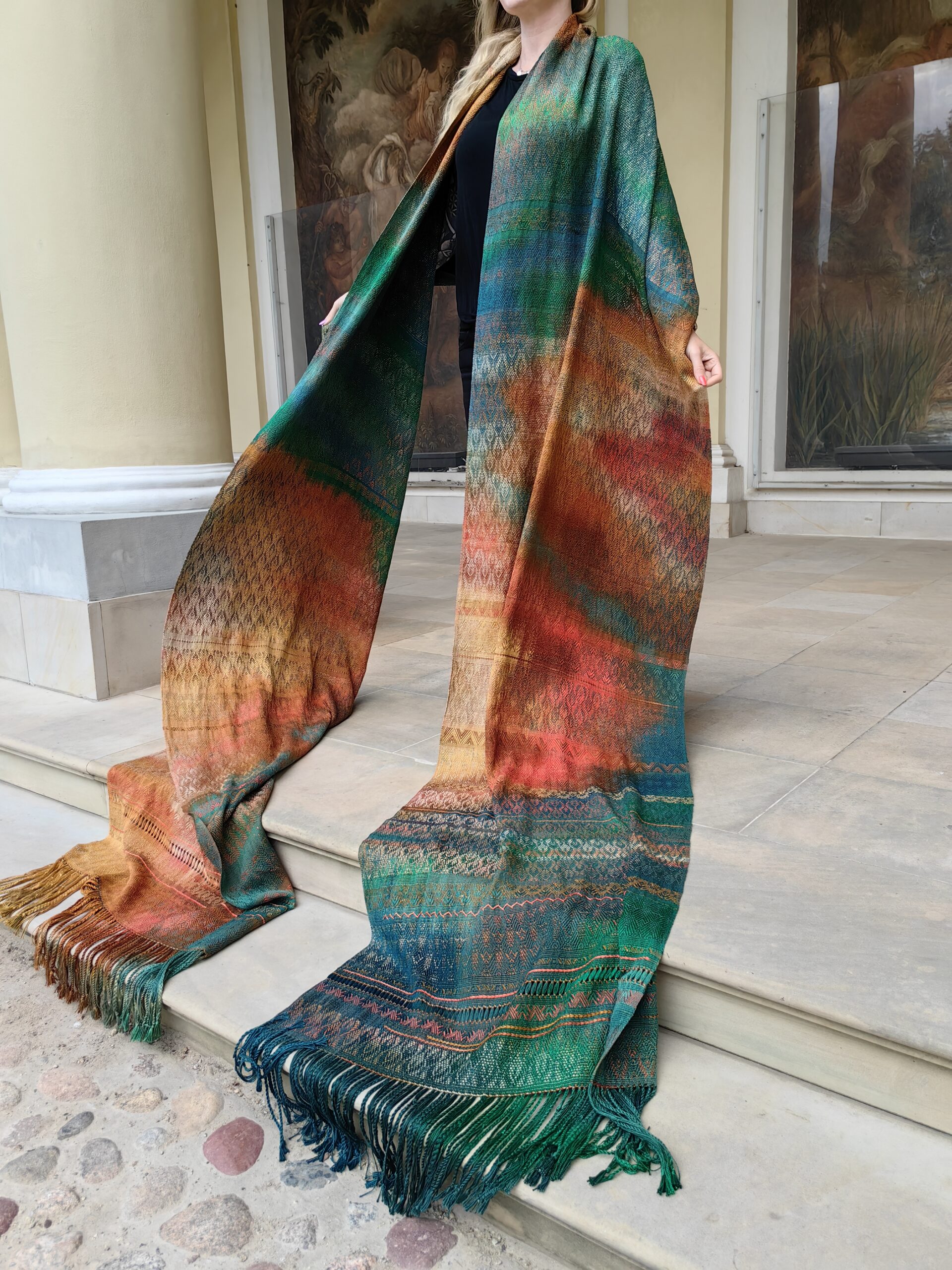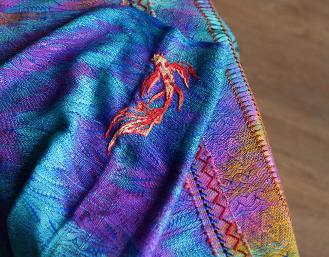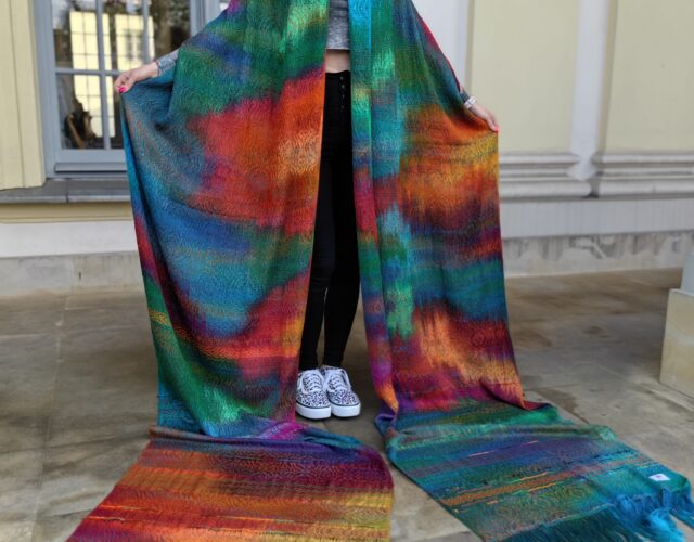 Jej inspiracją jest dosłownie wszystko – muzyka, zachody słońca czy ulotne emocje. Pani Małgorzata ma unikalną umiejętność przekładania tych obrazów i wrażeń na swoje tkaniny. Spod jej rąk wychodzą unikatowe wyroby, takie jak szale, kominy, chusty do noszenia dzieci, abażury, plecaki i nerki.