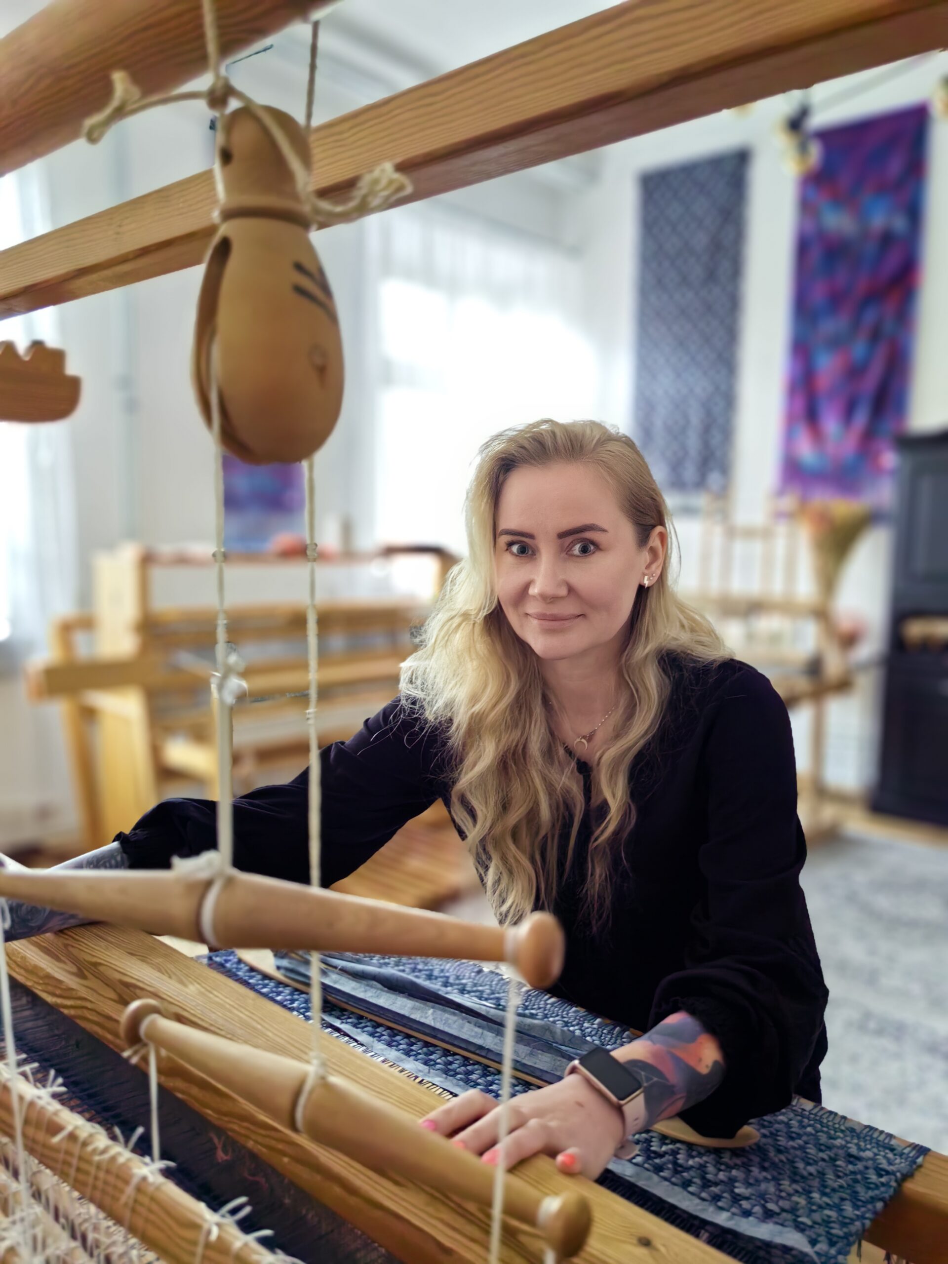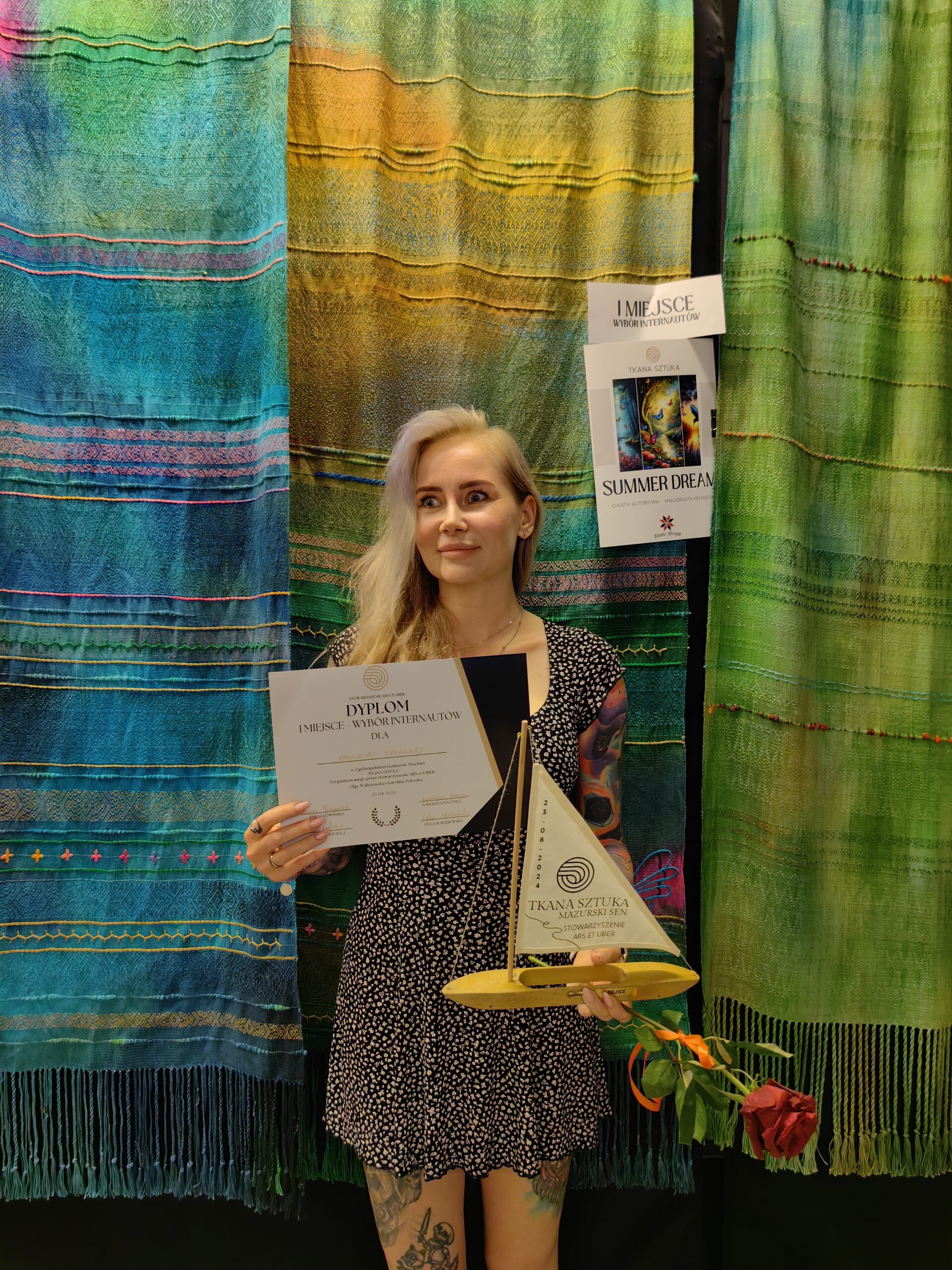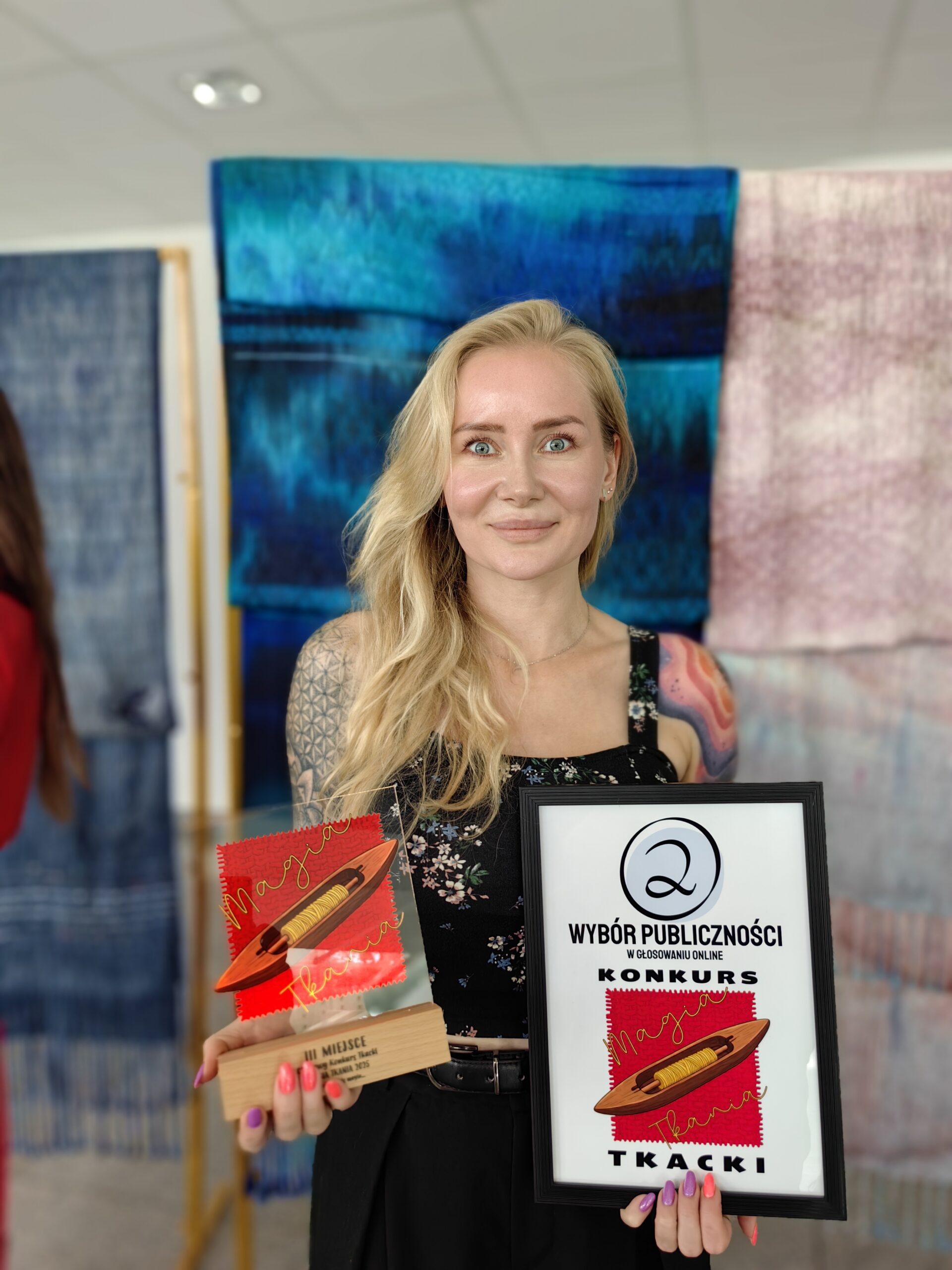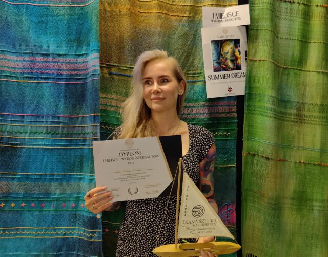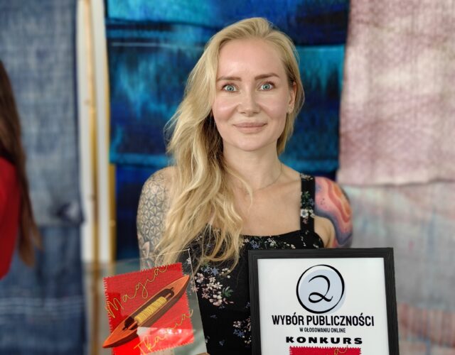 Pani Małgorzata to artystka, która od 2017 roku z pasją oddaje się tkactwu. Jej przygoda z tym rzemiosłem rozpoczęła się od zakupu krosna ze Szwecji i nauki na zasadzie prób i błędów, korzystając z materiałów dostępnych w Internecie. Z biegiem czasu jej talent i zaangażowanie zaowocowały wieloma sukcesami, a w 2024 roku Pani Małgorzata uzyskała prestiżowy tytuł mistrza tkacza.